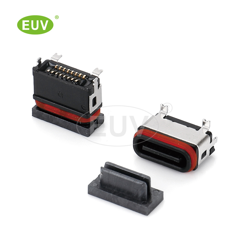 24P 臥式板上 舌片外露 自帶液態(tài)硅膠防水圈 防水IPX8 Type-C母座連