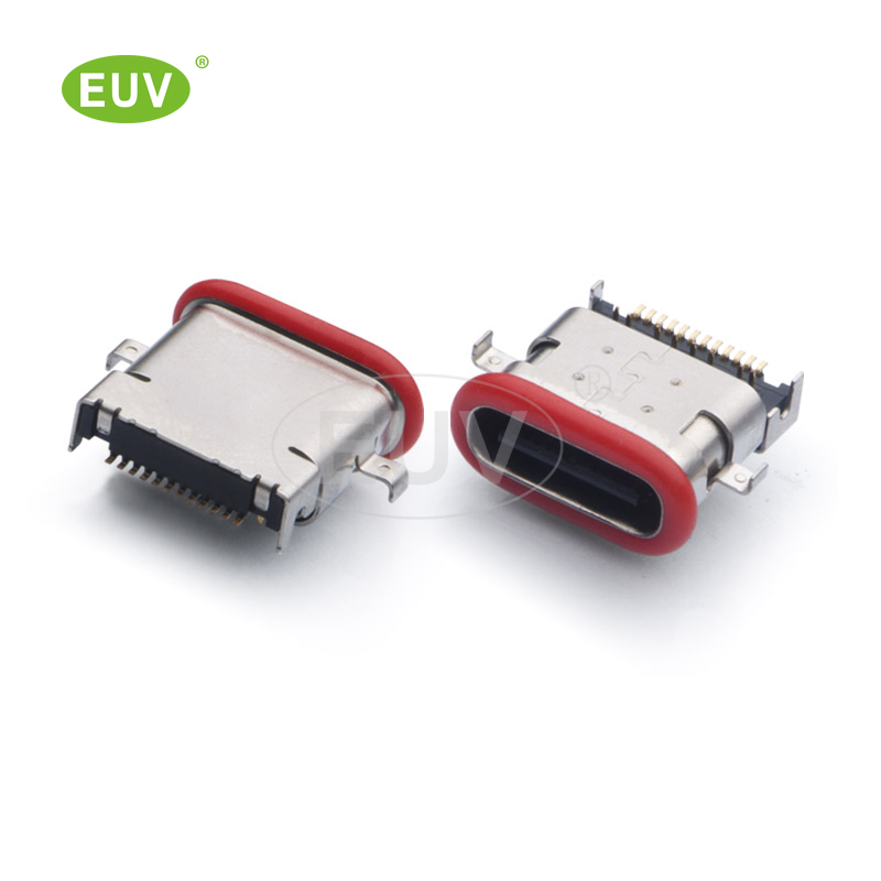 24P 臥式沉板1.4mm 自帶UV膠防水圈 防水IPX7 Type-C母座連接器