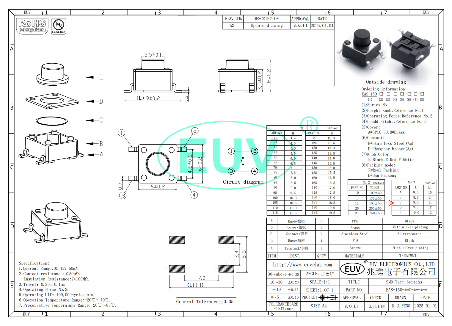 6.0mmx6.0mm 4腳平貼 貼片輕觸開關(guān)