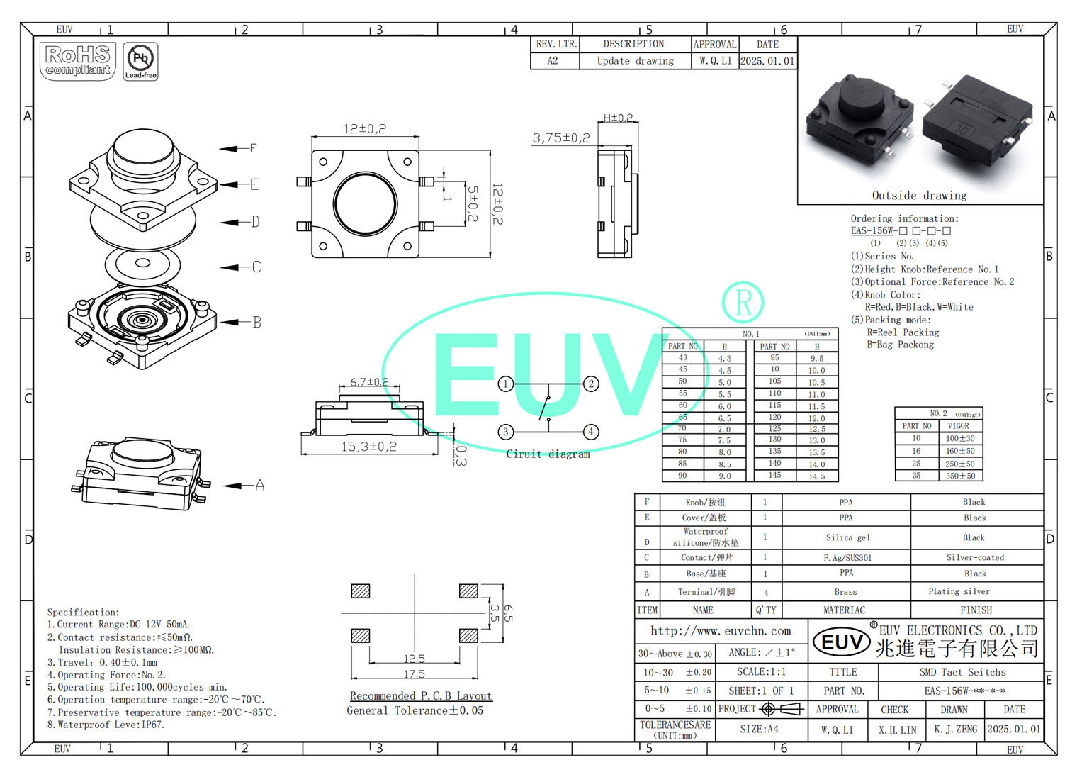 12.0mmx12.0 防塵防水IP67 貼片輕觸開關(guān)