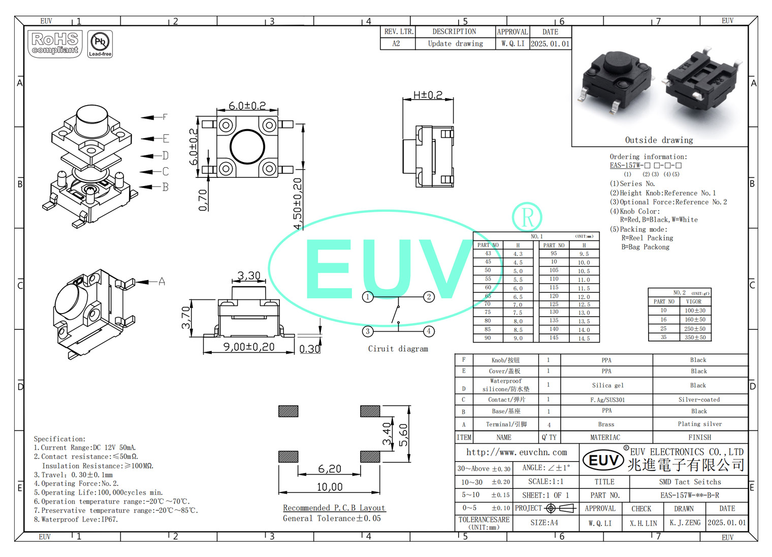 6.0mmx6.0mm 防塵防水IP67 貼片輕觸開關(guān)
