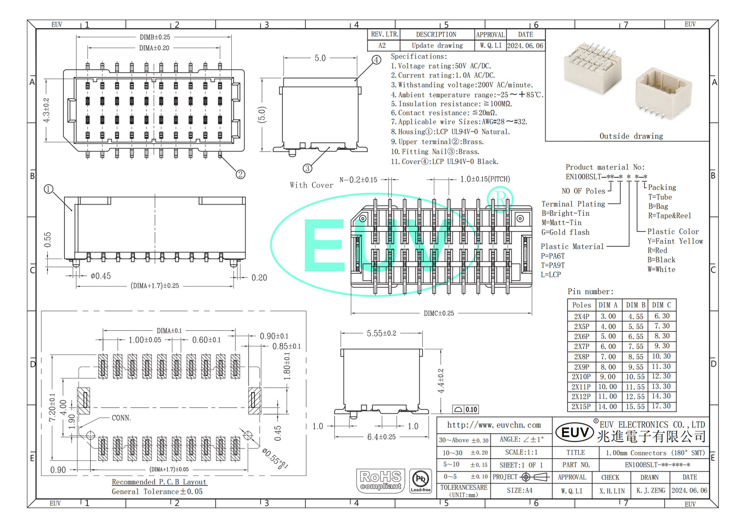 - 規(guī)格:1.0mm間距 180度 雙排
