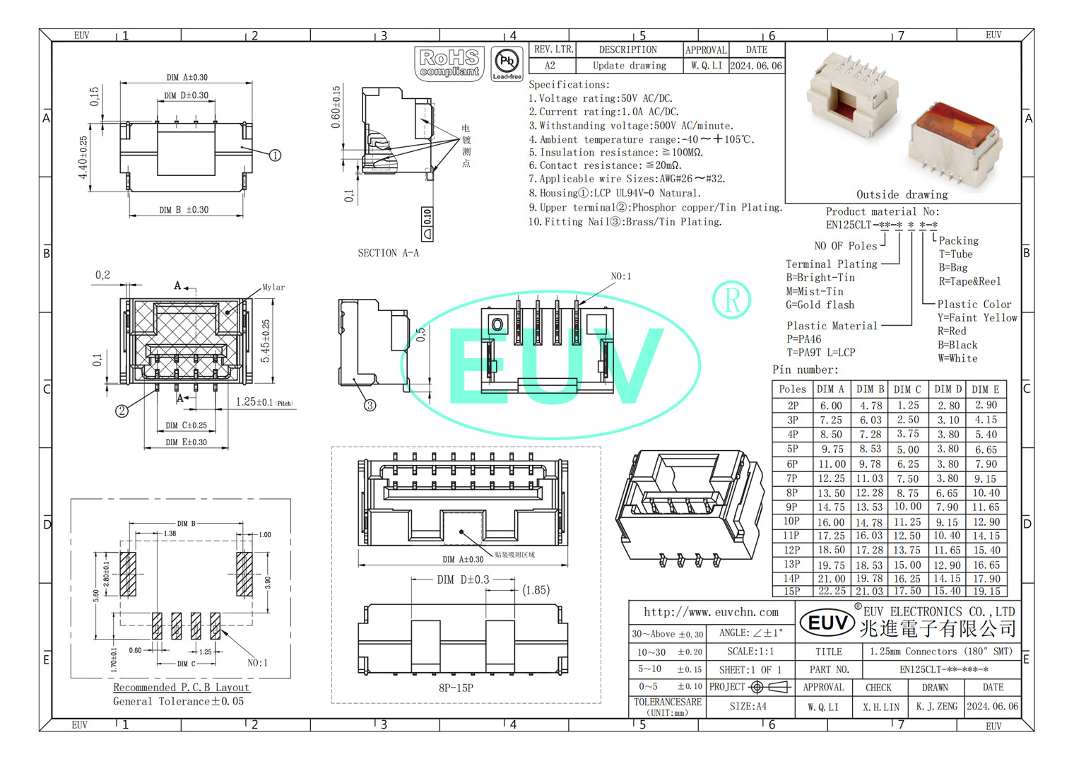 1.25mm間距 單排立式貼片 線對(duì)板連接器