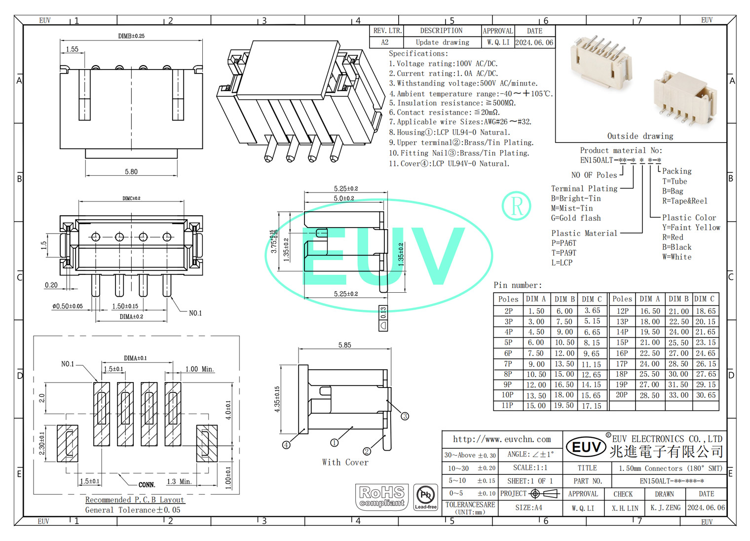 1.5mm間距 臥式貼片 線對(duì)板連接器