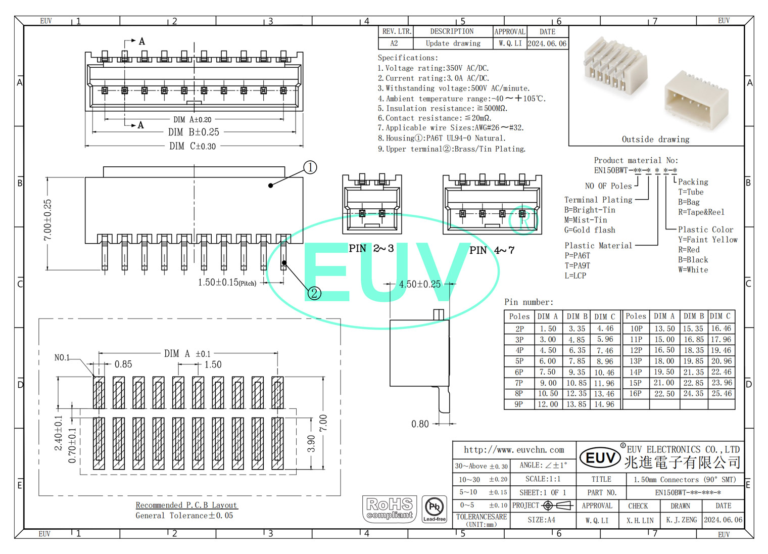 1.5mm間距 臥式貼片 線對(duì)板連接器