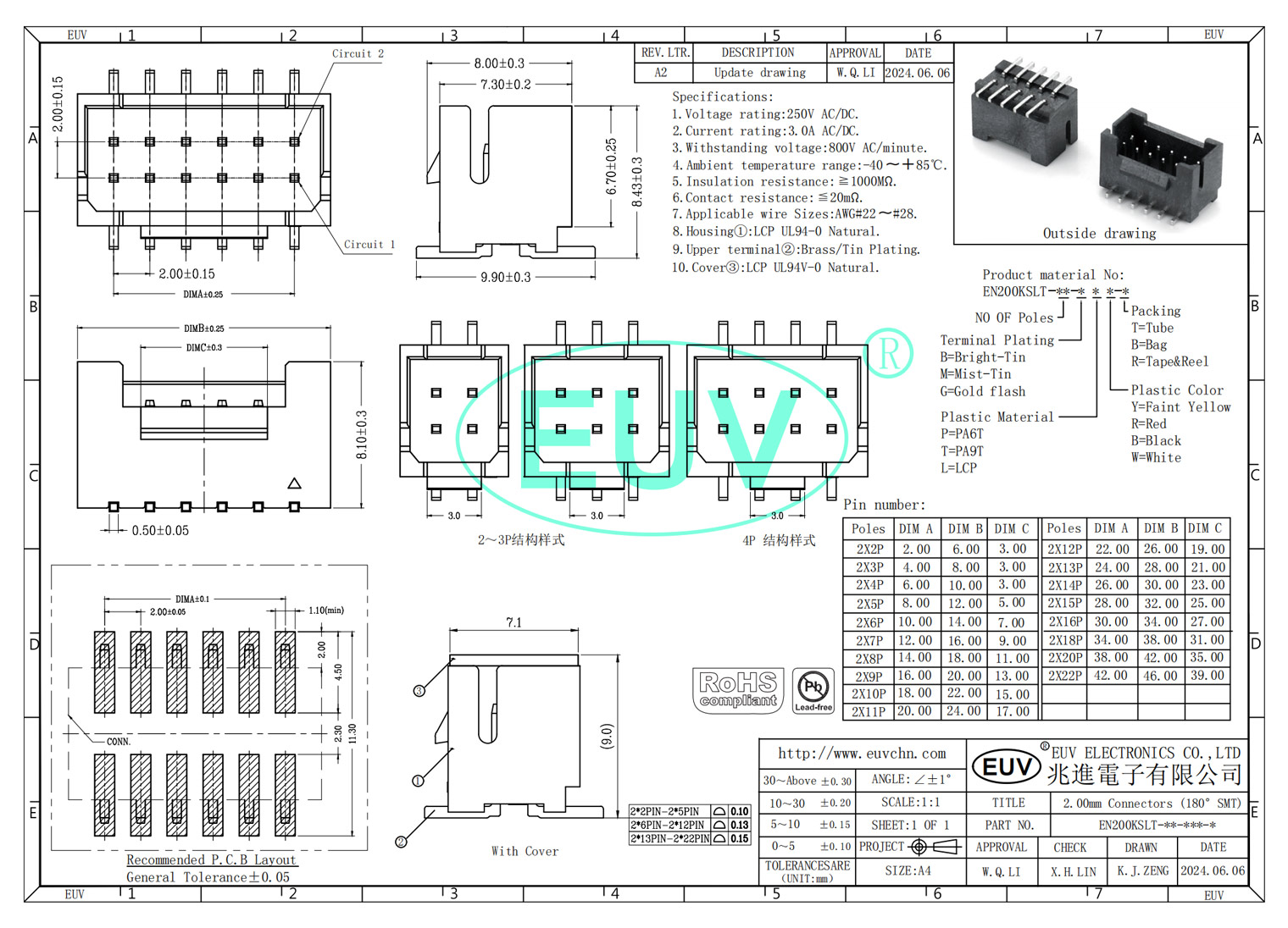 2.0mm間距 雙排立式貼片 帶扣 線對板連接器