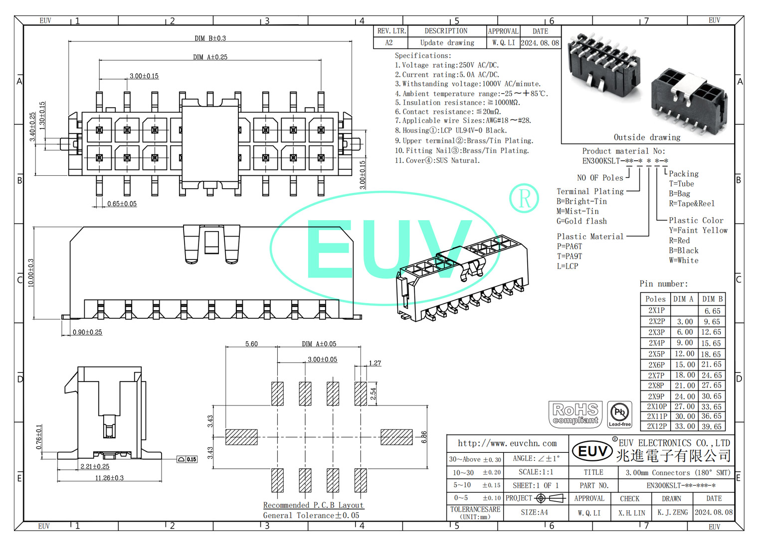 3.0mm間距 雙排立式貼片 帶扣 線對(duì)板連接器