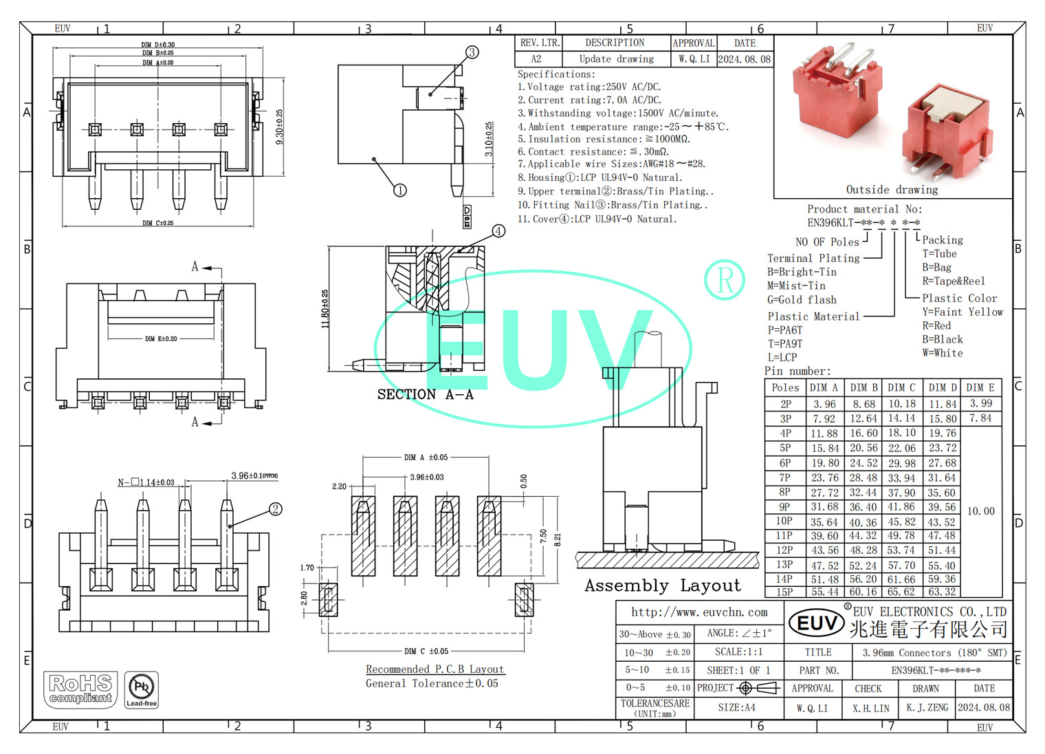 3.96mm間距 臥式彎插 線對(duì)板連接器