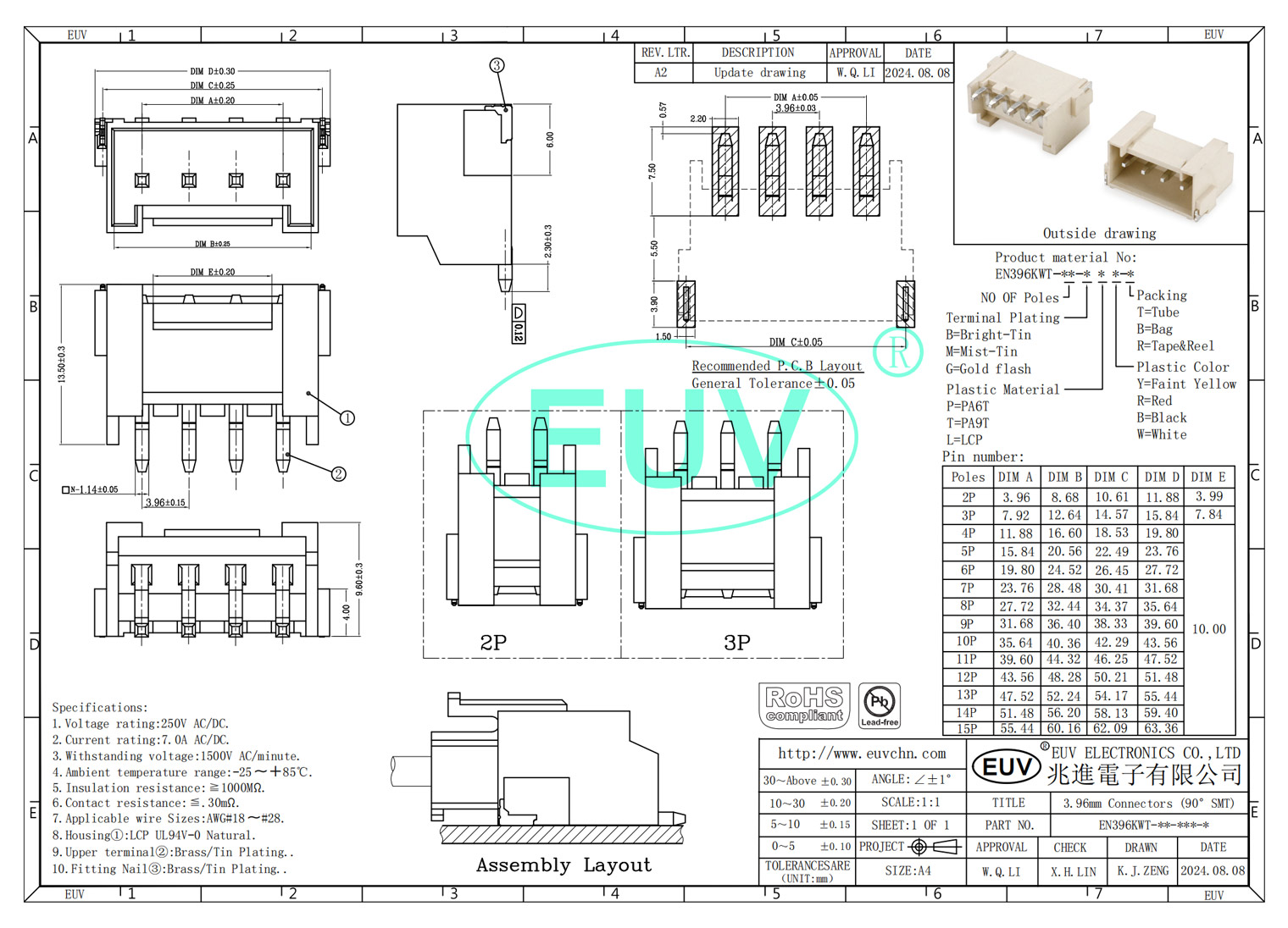 3.96mm間距 臥式貼片 帶扣 線對(duì)板連接器