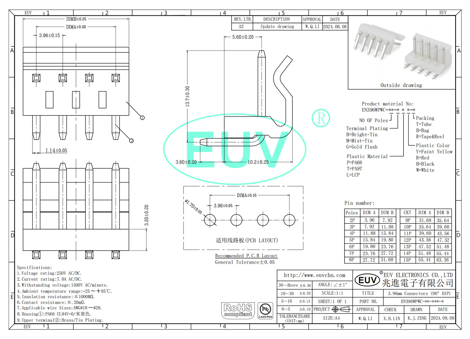 3.96mm間距 臥式彎插 線對(duì)板連接器